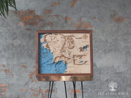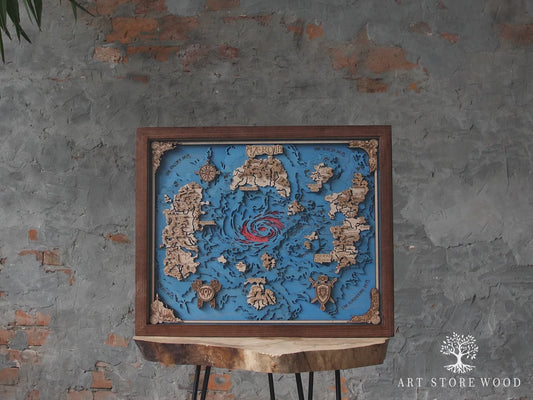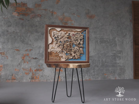ArtStoreWood specializes in creating intricate 3D wooden maps inspired by popular fantasy worlds, including Westeros, Hyrule, Middle-earth, and Azeroth. Each map is handcrafted from high-quality birch plywood, layered to highlight geographical features, and finished with a protective lacquer for durability and aesthetic appeal.